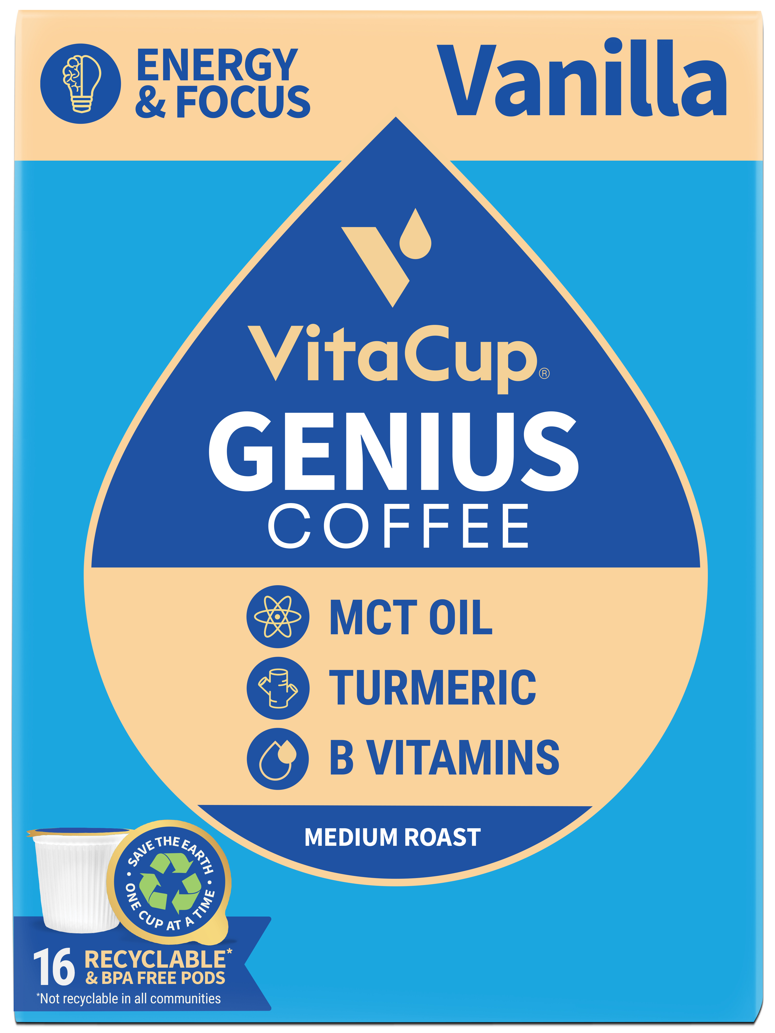 Vitacup Genius Keto Coffee Pods With Mct Oil Turmeric And Vitamins B1 B5 B6 B9 B12 D3 For Energy And Focus In Recyclable Single Serve Pod Compatible With K Cup Brewers Including Keurig